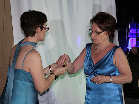 | Frau Hörger betätigt sich als Glücksfee und zieht die Gewinn-Nummern für die Tombola |