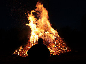 | Das Feuer brennt noch lange und ist weit sichtbar. |