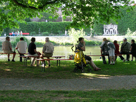 | Am frühen Abend ist der Schwal ein gut besuchter Platz zum Sitzen. |