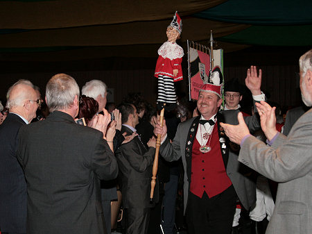 | Der Einmarsch der Gesellschaft der Pfuhler Seejockel beginnt. |