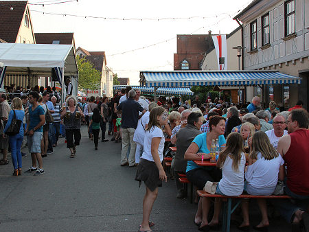 | Bei sommerlichen Abendtemperaturen lässt es sich in diesem Jahr vor dem Rathaus in der Hauptstraße noch lange feiern. |