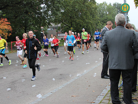 Johannes Estner (5279) ist der spätere Sieger des Halbmarathons. Mahdi Sareban (4420) vom SSV Ulm wird 3. |