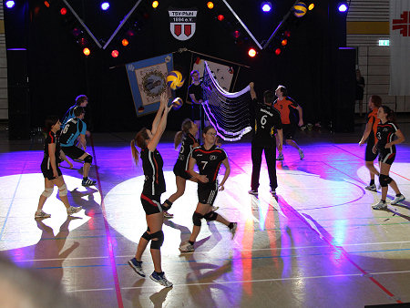 | Pünktlich um 19 Uhr eröffneten die jüngsten Leistungsturner den Abend mit einem Feuerwerk von Sprüngen und Überschlägen. |